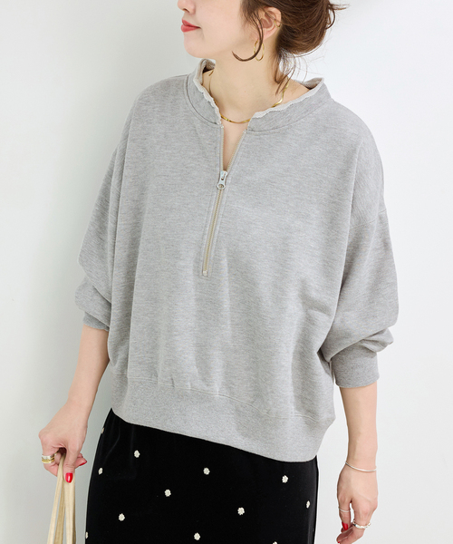 裏毛素材を使用したトレンド感あるハーフジップ仕様のスウェットトップス。※こちらは《品番:25070700505030》の追加商品です。・同一商品でも個体差が生じるため、採寸内容に若干の差が生じる場合がございます。コットンポリエステル生地の軽やかな着心地に加え、裁ち切り仕様のネックで抜け感を持たせたハーフジッププルオーバーです。肩周りにゆとりを持たせたワイドシルエットながら、ジャスト丈にすることでボリュームボトムとの相性がよく、幅広いボトムスと合わせていただけます。洗濯機洗い(弱)可能で気軽にお手入れできるのも嬉しいポイントです。**********************透け感:なし裏地:なし伸縮性:ややあり光沢感:なし生地の厚さ:普通**********************【スタッフ着用コメント】《スタッフ staff.Y》身長:160cm/普段サイズ:M-L/着用サイズ:フリーサイズ感:身幅は程よくゆったりめでインナーも選ばなそうです。素材感:裏毛タイプの柔らかいスウェット生地。着心地:程よい厚みで柔らかく、ロングシーズン着れそうです。※あくまで個人の感想です。**********************※取り扱いについては、商品についている品質表示でご確認ください。・水洗いで多少縮みます。※こちらの商品は、B.C STOCKでの取り扱いになります。 直接店舗へお問い合わせの際はB.C STOCK店舗へお願い致します。※照明の関係により、実際よりも色味が違って見える場合があります。またパソコン・スマートフォンなどの環境により、若干製品と画像のカラーが異なる場合もございます。※商品の色味は、商品アップ画像をご参照ください。ブラック、グレーA、ブラウン着用スタッフ:163cm 着用サイズ:フリーブラウン着用スタッフ:157cm 着用サイズ:フリー詳細着用モデル:163cm 着用サイズ:フリー本体:洗濯機洗い(弱)