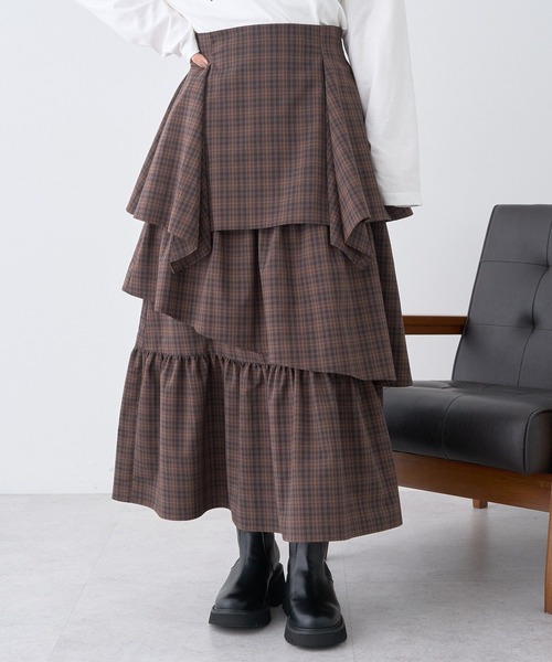 秋冬スタイルに華やかさをプラスしてくれるシックなチェック柄が魅力のスカート。タックやギャザーアクセントを効かせたランダムなティアードフレアがおしゃれなデザインです。バックゴム仕様のすっきりとしたハイウエスト仕立てで、スタイルアップも後押し。丈感長めで甘くなりすぎず、短丈ジャケットと合わせたメリハリあるスタイリングも楽しめます。透け感[なし]生地の厚さ[普通]光沢感[なし]伸縮性[ややあり]裏地[なし]ポケット[あり]※モデル着用画像は光の当たり具合で色味が違って見える場合がございます。商品の色味は物撮りの画像をご参照ください。● earth music&ecology ●(アースミュージック&エコロジー)「いいことある服。」たかが服。されど服。波風の多い日々のなかでもほほえんで前を向くあなたを、つつんで一緒に歩きたい。 いいことあるかも。そんな期待までまとえる服をあなたに。earth music&ecologyは、毎日を頑張る女性たちをちょっと前向きにするブランドです。 ▼ 商品のお気に入り登録がおすすめです ▼商品ページ内の「♡」ハートマークをクリック。完売時の再入荷や、最後の1点の通知、コーディネート画像がアップされたとき、お得なお値下げの際の通知を受ける事ができます。【お知らせ】ページでも通知が確認できます。