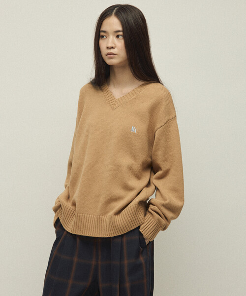 2025 Fall & Winter item肌触り柔らか、程よく抜け感のあるベーシックVネックニット●コットン×アクリル混紡素材で吸湿性・軽さ・保温性を兼ね備えた快適な着心地●やわらかな肌触りで、素肌でも心地よいストレスフリーな着用感●ゆったりとしたシルエットで女性らしい抜け感を演出●サイズによっては男性でも着用可能なユニセックス感●鎖骨が少し見える程の程よい深さのVネックおすすめコーディネートクルーネックTシャツやシャツをインナーに重ねて、Vネックの深さを活かしたレイヤードスタイルがおすすめ。デニムやチノパンと合わせてカジュアルに、スカートと合わせて女性らしいコーデにも対応可能。ゆったりシルエットでリラックス感のある着こなしが楽しめます。※掲載画像の商品の色味は、屋外や屋内の光の照射や角度により実物と色味が異なる場合がございます。また表示のサイズ感と実物は若干異なる場合もございますので、予めご了承ください。※着用、お取り扱いの際は、商品についている品質表示とアテンションタグを必ずご確認下さい。【MA Firsthand/マファーストハンド】「Good things have a sense of distance. =いいモノには距離感が必要」をコンセプトに、ユニセックスカシミヤブランド「BODHI」のデザイナー水谷倫氏を監修に迎えるMA Firsthand キーフレーズである「Good things have a sense of distance. 」は、新しいものと古いもの、伝統と最先端、男性と女性など世の中に対比される物事のなかで、お互いの良さを認め合うちょうどいい距離=「間」を知るというコンセプトを表現。