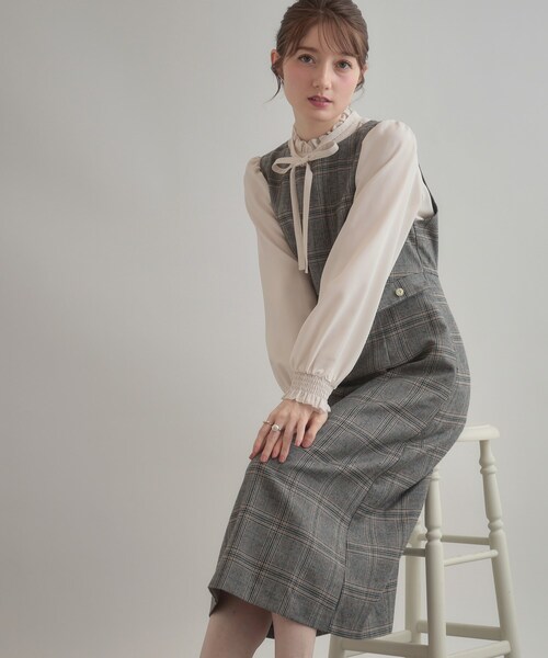差し色が効いたオリジナルのチェック柄のジャンスカ~POINT~Aラインのシルエットが大人可愛いですウエストの飾りフラップの金釦を少し高めにつけており、スタイルUP効果が期待できます◎差し色のラインが効いたチェックが周りと差のつくオシャレポイントに!【素材・機能】ポリエステルとレーヨン混の先染めチェック素材です【仕様】・ポケット数:前(ダミー)×2・後ろファスナー・裏地あり※着用しているインナーは本商品ではございません※照明の関係により、実際よりも色味が違って見える場合があります。また、パソコン・スマートフォンなどの環境により、若干製品と画像のカラーが異なる場合もございます。【スタッフコメント】・saori(153 )大人が似合うきれいめなジャンスカです!オリジナルの柄が大人可愛く特別感もプラス◎これからの季節に重宝すること間違いなしのアイテムです!通勤にもおすすめ◎【25AW NEW ARRIVAL】【25AW NEW COLLECTION】モデル情報:身長163cm B81 W56 H82 着用サイズ:38(M)店舗へのお問い合わせ商品番号:508-54025●製品寸法:36(S):着丈108cm B91cm 肩幅36cm W75cm H100cm38(M):着丈110cm B94cm 肩幅37cm W78cm H103cm40(L):着丈113cm B97cm 肩幅38cm W81cm H106cm42(LL):着丈114cm B100cm 肩幅39cm W84cm H109cm備考:
