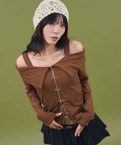 【2025年秋冬新作アイテム】【エッジィ×フェミニンの最前線。視線を奪うオフショルZIPトップ】■Detail大胆なオフショルデザインに、フロントZIPとスタッズを効かせた、主役級トップスが登場!女性らしいデコルテラインを美しく演出しながら、スタイリッシュな雰囲気をプラス。伸縮性のある素材で着心地も◎。コンパクトなシルエットがウエスト周りをすっきり見せ、どんなボトムスとも好相性。■Stylingミニスカートはもちろんロングボトムスとの相性抜群◎ブーツと合わせてスタイルアップに グランジ系からガーリーアイテムとまで相性がいいのでトレンドコーデにぴったりです♪■Point・オールシーズン・春服・夏服・秋服・冬服・カジュアル・韓国・トレンドアイテム・Y2K・ストリート・韓国ストリート・平成ギャル・フェアリーグランジ・オフショル ・ロンT※撮影状況や光の当たり具合、 ご覧になる環境(PCのモニタやスマホの画面)などにより、 色合いが異なって見える場合があります。※写真と実物では色や風合いが若干異なる場合がございますのでご了承ください。※撮影はサンプル品を使用しており、実際の商品とは仕様や加工・サイズ等が若干異なる場合がございます。【WEGO ZOZOTOWN お買い物ガイド】▼商品のお気に入り登録♡をクリック!完売カラーの再入荷通知や、ラスト1点の通知、セールの通知をお知らせします。▼ブランドのお気に入り登録新商品や再入荷、クーポンやセール情報など、いち早くWEGOのお得な情報を受け取ることができます。▼最短で翌日お届け商品をカートに入れた後、注文内容の確認ページで「即日配送」を選択していただければ、最短でご注文した翌日にお届け致します。