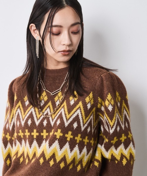 レトロシックなジャガード柄ニットプルオーバー。 ■デザイン プレイフルな配色とクラシックなジャガード柄のニットが登場。 どこか懐かしく、それでいて新しい、旬のレトロシックなムードを演出します。 ボリュームのあるパフスリーブがデザインポイント。 ■素材 ウォーム感と柔らかさが魅力のニット。 寒くなる季節に手放せなくなる着心地です。 ■おすすめのスタイリング やや短めの丈感でバランスが取りやすいのが魅力。 ボリュームのあるボトムとも相性が良く、 目線を上に上げることでスタイルアップ効果も期待できます。 <仕様> 柄の出方が多少異なる場合があります。 透け感:なし 伸縮性:ややあり 生地の厚み:厚い 光沢感:なし 季節:冬向き シルエット:普通 <洗濯方法> 手洗い <対応サイズ> M :バスト:79~90/ウエスト:64~69/ヒップ:91~95 L :バスト:86~94/ウエスト:69~77/ヒップ:92~100 LL :バスト:93~101/ウエスト:77~85/ヒップ:97~105 3L :バスト:100~108/ウエスト:85~93/ヒップ:102~110 4L :バスト:107~115/ウエスト:93~101/ヒップ:107~115 5L :バスト:114~122/ウエスト:101~109/ヒップ:112~120 ※こちらはヌードサイズです。 ※平置きのアイテムサイズとは異なる計測方法となりますのでご了承ください。 #ゆったり#体型カバー#二の腕カバー #大きいサイズ#プラスサイズ#大きいサイズレディース #M#L#LL#3L#4L#5L 【気になる商品はお気に入り登録がおすすめ】 ▼商品のお気に入り登録 完売カラーの再入荷通知や、ラスト1点の通知、セールの通知などお得な情報が受け取れます。 ▼ブランドのお気に入り登録 新商品や再入荷など、ブランドのお得な情報をいち早く受け取ることができます。 【CHIC STYLE】 シルエットやディティールにこだわったアイテムが好評。 色使いや素材感を大事に、洗練されたデザインと着用の力を 感じていただけるこだわり大人カジュアルを提案。 ▼公式Instagram @chicstyle_officialsite