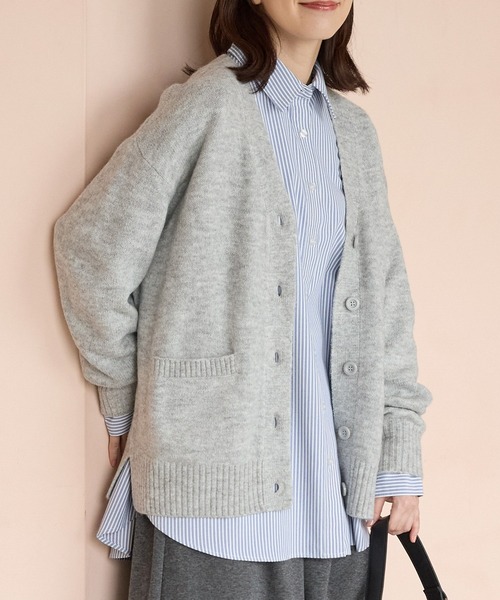 ふんわりした肌ざわり【デザイン】首元がすっきり見えるVネックの、シンプルでベーシックなデザイン。ゆったりした幅とヒップまで隠れる丈感で気になる体形もカバー。【素材・機能】環境にやさしい再生ポリエステルを使用した、ふんわりとした肌触りのウール混素材。便利な両サイドポケット付き。【スタイル】カジュアルなボトムスと相性抜群。タートルネックや首元にデザイン性のあるトップスとのレイヤードもおすすめ。デイリーからお出掛けまで幅広いスタイリングに活躍。※裾両脇スリットあり(8cm)品番:646-32-1548