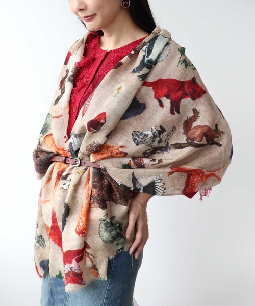 遊び心を感じさせる上品なウールとシルク素材のショール軽やかな着心地で、薄手ながらもしっかりとした質感を持ち、肌に優しく寄り添います。特徴的なアニマル柄が施されたデザインは、シンプルな装いに華やかさを添えてくれる一品です。さらに、軽量で持ち運びも簡単なため、旅行やお出かけの際にも最適です。どの角度から見ても美しいこのショールは、身に着けるだけで特別な気分を演出します。日常使いはもちろん、大切な方への贈り物としてもおすすめです。