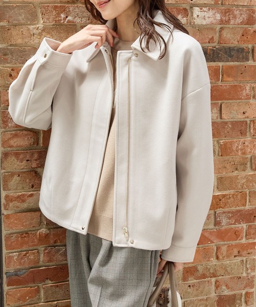 大人のシンプルアウター【デザイン】衿付きフロントジップの、今年らしいシンプルなデザイン。なめらかな素材感や比翼仕立て、ゴールドのファスナーやボタンで、メンズライクになりすぎず上品な印象に。丸みを持たせたコクーンシルエットでフェミニン感アップ。ゆったりした幅と腰回りが隠れる丈感。両サイドに目立ちにくいシームポケット付き。【素材・機能】環境に優しい再生ポリエステルを使用した、軽くて暖かなフェイクウール素材。気になる菌やにおいにも安心の『抗菌防臭』と、乾燥する季節にうれしい『静電気軽減』の機能付き。【スタイル】マニッシュなスラックスと合わせたカジュアルな着こなしにも、ワンピースやロングスカートと合わせたきれいめスタイルにも、幅広く活躍。冬物のニットなど厚手の服装にも羽織れるように、少し大きめの作りとなっておりますので、ジャストサイズでのご購入をおすすめします。●裏地/あり品番:673-43-8459