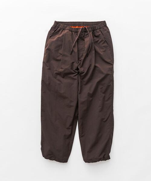 2025FW ナイロンタッサーシリーズが新たに登場。 自社開発「UR TECH」の機能性素材を使用したウォームトラウザー。 EKALの定番機能性素材、ナイロンタッサーシリーズから冬仕様の保温性のあるトラウザーが登場。 表地は撥水性、UVカットの機能性を持った自社開発素材『UR TECH』のナイロンタッサー生地なります。 裏地にはポリエステルを使用した起毛のトリコット裏地を使用していますので、初春頃までお使いいただける、暖かみのある柔らかな肌触りになっています。 フロントは深めのワンタックで腰回りはゆったりとしたシルエット。 裾はドローコード仕様になっているので、絞ることでシルエットの変化や防風性が高められます。 ウエストはゴムギャザーとドローコードによるイージー仕様を採用しており、リラックスした履き心地です。 ポイント ・撥水性、UVカットの機能性のある自社開発素材『UR TECH』を使用。 ・軽量ながら耐久性のあるナイロンタッサー生地。 ・起毛のトリコット裏地で保温性もプラス。 ・裾部分のドローコードでシルエット調整可能。 【2025 Autumn/Winter】【25AW】 ※この商品は、はっ水加工をしていますが、水滴などをつけたままにしておくとあとが残ることがあります。ご注意ください。この加工の効果は永久的なものではなく、着用や洗濯を繰り返すと、効果が低下します。ご了承ください。 ※商品画像は、光の当たり具合やパソコンなどの閲覧環境により、実際の色味と異なって見える場合がございます。予めご了承ください。 ※商品の色味の目安は、商品単体の画像をご参照ください。 ▼お気に入り登録のおすすめ▼ お気に入り登録された商品は、マイページにて現在の価格情報や在庫状況の確認が可能です。 お買い物リストの管理にぜひご利用ください。 素材感 透け感 : なし 伸縮性 : なし 裏地 : あり 光沢 : なし ポケット : あり 全色:179cm(L) ML
