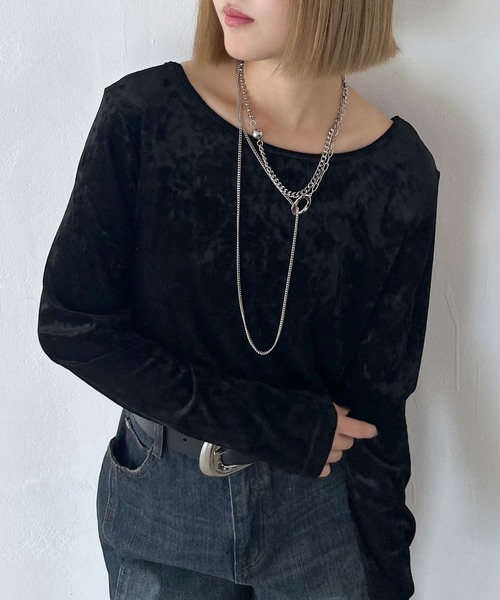 \秋冬使える万能ベロアカットソー/ 透け感のあるベロアトリコット生地を使用し、程よい光沢感で、着映えする一枚に仕上げました。 体のラインを拾わないゆったりとしたサイズ感に、やや長めの袖丈がポイントです。 シンプルなデザインで、オーバーオールやキャミワンピースのインナーとしても活躍し、コーディネートの幅が広がります。 〈注意事項〉 ・サンプルにて撮影をしておりますので、実際の商品とは素材や仕様・加工・サイズ等が若干異なる場合がございます。 ・モニター・環境等により実際の商品と色味が多少異なって表示される場合がございます。予めご了承をお願いいたします。 ・撮影環境により、光の当たり具合で色味が違って見える場合があります。あらかじめご了承下さい。 ▼気になるアイテムは《お気に入り登録》がおすすめです! 完売カラーの再入荷情報、セール情報、ラスト1点の通知を受け取ることができます! ▼《ブランドのお気に入り登録》で新商品や再入荷などのお得な情報をいち早くお知らせします。