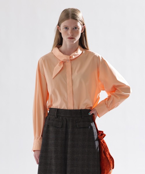 ボウタイデザインブラウス ELTONポリエステル綿のブロード素材を使用し、ハリ感を活かしたボウタイブラウス。変形衿のデザインで、第一釦に右衿の釦穴を留め、その間に左衿を通すと簡単にボウタイが作れます。かしこまった印象になりすぎないよう、ドロップショルダーでゆとりのある身巾、後ろヨーク下には大きくタックを取り、丸みのあるシルエットが完成。1枚ではもちろん、ニットやジャンパースカートから衿をのぞかせる新鮮なレイヤードスタイルを楽しんでいただけます。[Fabiric]表地: ポリエステル 65% 綿 35% ポリウレタン 5%光沢感: なし / 伸縮性: ややあり / 透け感: OFFWHITE:ややあり2025 FALL&WINTER 「unorthodox IVY」伝統に寄り添いながらも枠を超えて自由に表現するスタイルストライプのボタンダウン、Vネックのセーターチェックのスカート、チノトラウザー時代を超えた「正統派」の美学をkelenらしく自由に解釈したコレクションそれは、これまでに見たことのない、新しいアイビーのかたちトラッドやカレッジが象徴する知性と誠実さを大切にしながらそこに少しの遊び心と現代的な洗練を加えることで知的でありながらも、どこか躍動感を感じさせるそんなスタイルが息づいたKELEN 25AW Collectionオーソドックスなディティールと今の時代にふさわしい自由なスタイルが融合する「unothodox IVY」あなたの日常が自由で豊かな個性で彩られますように「KELEN / ケレン」「10年後も変わらず着れる」をコンセプトに、ワーク・ミリタリー・ヴィンテージウェアアイテムの伝統的な技術やディティール・シルエットをベースに、 トレンド感と今の気分を織り交ぜて仕立てる「ケレン」というニュースタンダードを提案しています。[商品のお気に入り登録をおすすめです!]ハートマークをクリックすることで完売カラーの再入荷や、ラスト1点の通知や値下げなどお得な情報の通知を受ける事ができます。[ブランドのお気に入り登録も是非!!]新商品や再入荷など、いち早くブランドのお得情報を受け取ることができます。