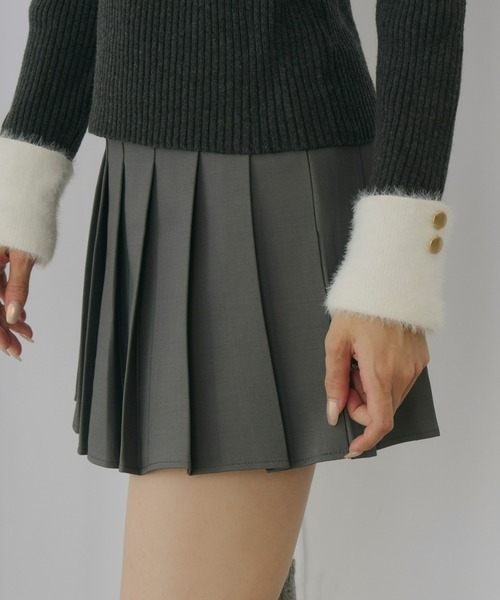 大人の余裕をまとった、ミニ丈スコートミニ丈でも、上品に決まる。大人のためのフレアプリーツスコートが登場。裾に向かって自然に広がるやわらかなフレアシルエットが、脚をすっきりと見せつつ、軽やかな印象を演出。トレンド感のあるプリーツデザインながら、落ち着いたカラーとほどよいハリ感で甘くなりすぎず、上品に仕上げました。気になる透け感や座り姿勢にも配慮して、安心のインナーパンツ付き。カラーはクリーンにまとまるグレー、こっくり深みのあるブラウンの2色展開。タイツやブーツとのスタイリングも映える一着です。ミニ丈を、大人っぽく楽しみたい。そんな日のための、少し特別なスカートです。