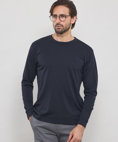 【抗菌防臭】【着用推奨シーズン:オールシーズン】<素材>表面にウール、裏面にサトウキビなどの植物を由来とするバイオプラスチック【ポリ乳酸】を原料としたPlaX(プラックス)を用いたオリジナルの天竺素材を使用しています。PlaXは生産工程、廃棄工程ともに環境負荷の小さいサステナブルな素材です。また、抗菌防臭効果があり、暑い夏も快適に着用いただけます。<デザイン>特徴的な生地を生かすオーセンティックなデザインのTシャツです。袖口がリブ仕様の為、ジャケットやアウターのインでの着用時にももたつきません。左裾にダンディマンの刺繍が同色で入ります。1枚でご着用はもちろん、ジャケット、アウターのインナーにも最適なカットソーです。こちらの商品は一部店舗とオンラインストア限定商品です。WEB限定商品は、予告なく一部店舗で展開される場合もございます。