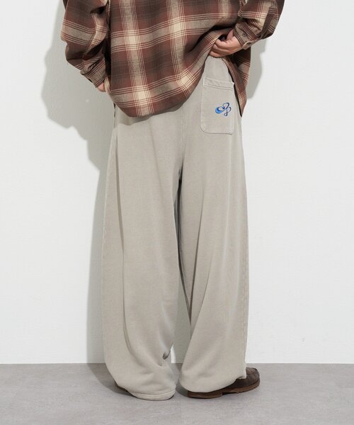 ゆるさと存在感を両立するピグメントワイドパンツ▼ポイントピグメント加工ならではの風合いが魅力のワイドスウェットパンツ。ウエストはゴムとひも仕様で、リラックスした穿き心地を実現。バックポケットの刺繍がさりげないアクセントになり、カジュアルコーデを格上げしてくれます。▼スタイリングオーバーサイズのシャツやスウェットと合わせれば、ストリート感あるゆるコーデが完成。シンプルなロンTにさらっと羽織りを重ねても、抜け感のある旬なスタイルに仕上がります。---------------------------------------------------透け感:なし伸縮性:あり裏地:なし光沢:なし---------------------------------------------------家庭洗濯:30℃限度/洗濯機[非常に弱い]タンブル乾燥:不可アイロン:低温110℃までクリーニング:ドライクリーニング不可、非常に弱い処理によるウェットクリーニング可●摩擦や洗濯などにより徐々に色落ちしていきます。色移りした場合はすぐに洗濯してください。●部分的なもみ洗いは、脱色が目立つのでお避け下さい。---------------------------------------------------※着用、お取り扱いの際は、商品についている品質表示とアテンションタグを必ずご確認下さい。※画像の商品はサンプルです。実際の商品と仕様、加工、サイズが若干異なる場合がございます。※可能な限り実物に近いカラーにて掲載していますが、撮影環境やモニター環境などにより製品と画像のカラーがやや異なって見える場合もございます。予めご了承ください。【お買いものをよりお楽しみいただく為に!!】▼商品のお気に入り登録(ハートマークをクリック)お気に入りアイテムの完売カラーの再入荷通知や、ラスト1点の通知、セールの通知も受け取ることができます。▼ブランドのお気に入り登録新商品や再入荷、クーポン配布などのお得な情報を受け取ることができます。