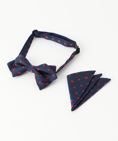 《デザイン》ドットの中にリンゴのモチーフが隠れた、遊び心のあるデザインです。セットのポケットチーフと一緒に使うことでおしゃれ度がグッと上がります。定番カラーをベースにしているので様々なスタイルに合わせていただけます。光沢感のある糸を使用することで華やかな印象にしています。首周りはアジャスターで調整出来ます。リボンの形は、両端が剣のように尖ったデザインが特徴のポインテッドエンドタイプです。左右のデザインは非対称になります。通常のスクエア型よりも、シャープでスタイリッシュな印象を与えます。また、この形は顔周りをスッキリとみせてくれる効果があると言われています。《素材》光沢感のあるポリエステル糸を使用しています。
