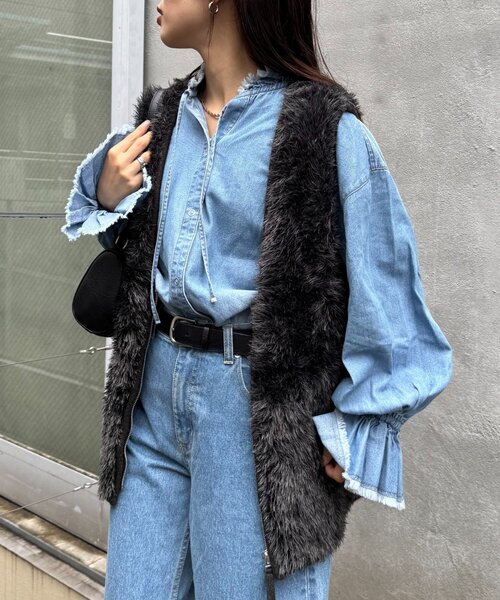 シーズンムード高まる“ファー素材” いつもの服に足すだけでトレンドコーデを完成してくれる1着! ■デザイン ふわっとした素材で仕立てたZIPベスト! 毛足の柔らかな風合いがコーデに季節感をプラスし程よくリラックスした抜け感を演出♩ V字のシルエットは、すっきりとした首元を作りつつ中に合わせるアイテムを選ばないのが魅力。 広めに設定した袖口はオーバーサイズのTシャツやスウェットなどもレイヤード可能です! また、ジップ仕様なので羽織りとしても閉めてトップス風にもなり、着回し◎ いつものコーデにプラスするだけで、こなれ感とトレンド感を簡単に取り入れられる万能アイテムです。 ■スタイリング ロンTやカットソーに重ねるだけ!一気に旬のレイヤードスタイルの完成。 カジュアルなデニムから、シックなスラックスまで馴染む着回し力! スカートやワンピースに羽織れば、甘すぎない大人っぽいバランスを演出 前のジップを閉めトップス風にするとコートのインナーにも使えます♩ ■お手入れ方法 洗濯:不可 アイロン:不可 タンブル乾燥:不可 ・・・・・・・・・・・・・・・・・・・・・・ 透け感:なし 裏地:なし 伸縮性:なし 光沢感:なし 生地の厚さ:やや厚手 ・・・・・・・・・・・・・・・・・・・・・・ ▼気になる商品をお気に入り登録 ♡をクリックして《お気に入り登録》がオススメです! 入荷情報や、クーポン情報が通知されるようになります。 ※画像の商品はサンプルを使用しております。実際の商品と若干の仕様が変更になる場合がございますので、予めご了承の上ご注文くださいますようお願いいたします ※屋外の光や照明の当たり具合で、実際の商品の色味とカラー別画像の色味に若干の違いが発生する場合がございます。詳細画像と併せてご確認の上、ご注文いただきますようお願い致します。 ※独自のタイムセールなどの施策により、実店舗と価格差が発生する場合がございます。 ※実際の店舗在庫につきましては、各店舗に直接お問い合わせください。