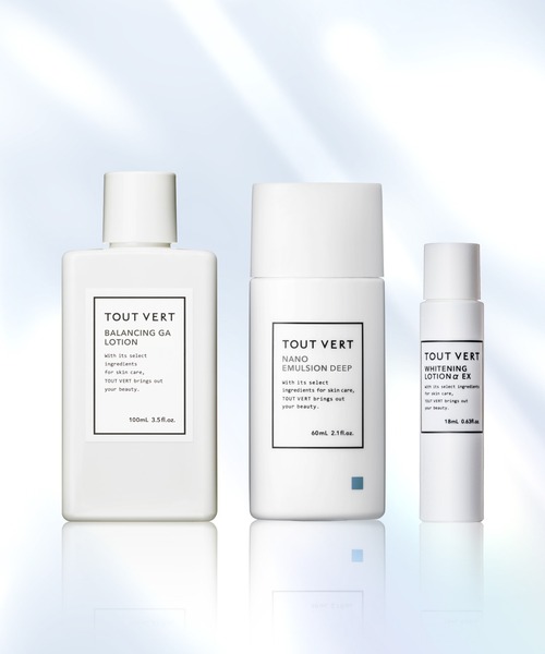 ZOZO限定 ZOZOCOSME AWARDS 2025 上半期にてカテゴリー大賞を受賞したプレ化粧水「バランシングGAローション シリーズ」と、セラミド高配合*1乳液「ナノエマルジョン ディープ」がセットに。 さらに、美白*2とニキビ*3に効く「薬用ホワイトニングローションαEX」のミニボトル(約10日分)も加え、様々な肌悩みをまるごとケアします。 【商品説明】 ●バランシングGAローション モイスト or バランシングGAローション 100mL(プレ化粧水) グリシルグリシン*4を6%配合し、毛穴*5に働きかけベタつきの気にならない肌へと導く毛穴ケア特化型プレ化粧水。話題のアゼライン酸誘導体*6も配合し、肌荒れ*7やテカリをケアします。肌質に合わせて、タイプをお選びいただけます。 NEW〈バランシングGAローション モイスト〉 乾燥せずスッと肌になじむさっぱりしたテクスチャー。 ・年齢肌、乾燥肌の方 ・毛穴以外にも保湿感やエイジングケア*8への働きを求める方 ・テカリは気になるけど乾燥も気になる方 〈バランシングGAローション〉 サラッとみずみずしい、とてもさっぱりしたテクスチャー。 ・脂性肌、混合肌の方 ・毛穴やテカリのお悩みに特化した効果を求める方 ・季節問わずテカリやべたつき、メイク崩れが気になる方 ●ナノエマルジョン ディープ 60mL(乳液) セラミド類似成分*9を高濃度*1 12%配合したインナードライ*10対策の乳液。化粧水のようにみずみずしくさらっとしたテクスチャーの乳液が、角層すみずみまで素早く浸透し、乾燥などで乱れたキメを整えます。 ●薬用ホワイトニングローションαEX 18mL(薬用美白*2化粧水) ビタミンC誘導体APS*11を6%もの高濃度で配合した希少な薬用美白化粧水です。シミ*12・くすみ*13や、ニキビ*3が気になる肌に確かな実力で応え、透明感*14あふれるハリツヤ肌へ導きます。 【ご使用方法】 ●バランシングGAローション シリーズ 洗顔後すぐの肌にお使いください。500円玉大のローションを手のひらに取ります。お顔全体にやさしくすべらせながら、広げていきます。両手で包み込むようにやさしくおさえて、浸透させます。 ●薬用ホワイトニングローションαEX 手のひらに500円玉大をとり両手で温め、お顔全体をやさしくおさえこみながら、なじませます。 ●ナノエマルジョン ディープ 化粧水の後、手の平に10円玉位をとります。両手で包み込むように、やさしくおさえて、浸透させます。乾燥を感じる部分には、重ねづけしてください。 【消費期限】 ●バランシングGAローション シリーズ:室温保存(未開封1年、開封後3ヶ月) ●ナノエマルジョン ディープ:室温保存(未開封1年、開封後6ヶ月) ●薬用ホワイトニングローションαEX:室温保存(未開封1年、開封後3ヶ月) *1 当社比 *2 メラニンの生成を抑え、シミ・ソバカスを防ぐ *3 ニキビ予防 *4 整肌 *5 乾燥による毛穴の目立ち *6 アゼロイルジグリシンK(整肌) *7 肌荒れ予防 *8 年齢による保湿、ハリのお手入れ *9 ラウロイルグルタミン酸ジ(フィトステリル/オクチルドデシル)、セチルPGヒドロキシエチルパルミタミド、ラウロイルグルタミン酸ジ(オクチルドデシル/フィトステリル/ベヘニル)(保護) *10 角層内の乾燥 *11 L-アスコルビン酸リン酸エステルナトリウム(有効成分) *12 日焼けによる *13 乾燥・キメの乱れによる *14 保湿による ------------ ♡アイテムを「お気に入り」登録 再入荷/ラスト1点/予約受付開始/セールの通知をGET ♡ショップを「お気に入り」登録 新商品などトゥヴェールの最新情報をGET ------------