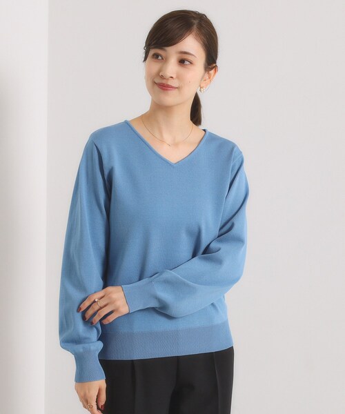 【デザイン】★縮みに強いタフニット★気兼ねなくお家でお洗濯できる、型崩れしにくく縮みに強いニットポリエステルの芯糸にレーヨンを巻き付ける特殊な紡績方法で作られた糸を使用しているため、糸が安定しやすく耐久性が良く、洗濯時に型崩れしにくい素材になっています。適度なシャリみときゅっと詰まったしっかりとした肉感が特徴。ON・OFF問わず幅広いシーンで活躍するベーシックなVネックニット。浅めのV開きが品よく、オフィスシーンでも好印象に。襟のパイピングも細幅で華奢にすることできれいめに仕上げています。【素材】さらりとした肌触り。目の詰まったコシのあるハイゲージニット素材です。※照明の関係により、実際よりも色味が違って見える場合があります。また、パソコン・スマートフォンなどの環境により、若干製品と画像のカラーが異なる場合もございます。----------------------------------------★お気に入り登録がおすすめ★▽気になる商品はハートマークをクリック!・再入荷やセールの通知をお知らせ・お気に入り一覧からいつでもチェック▽ブランドのお気に入り登録も!・新商品やお得な情報をいち早くお知らせ----------------------------------------モデル情報:身長163cm B78 W57 H84 着用サイズ:00(フリーサイズ)店舗へのお問い合わせ商品番号:P93-14021●製品寸法:00(フリーサイズ):着丈56cm B94cm 袖丈57cm 肩幅37cm備考: