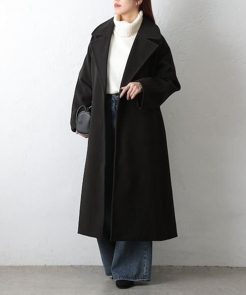 【足元まで暖かい、テックウールロングコート】ラグランスリーブデザインが特徴的なテックウール素材のロングチェスターコートです。ひざ下まで隠れる丈感で冬でも暖かく着ていただけます。また程由生ゆとりがあるので冬物のニットなどを羽織っても着ぶくれ感なく合わせられます◎首元も深めぼV字に開くので顔周りもすっきりとした印象に。ハイネックのトップスと合わせて首元からトップスをチラ見せするのもかわいいです。デニムやスラックス、スカートなど様々なアイテムと相性が良く、着回ししやすいチェスターコートです。【商品ポイント】・ロング丈で足元まで暖かい・すっきりした襟元・パンツでもスカートでも◎----------------------------------------------------■商品特徴洗 濯 方 法 :手洗い可裏 地 :あり透 け 感 :なし伸 縮 性 :なし光 沢 感 :なし生地の厚さ:普通----------------------------------------------------■素材表地: ポリエステル100%裏地: ポリエステル100%----------------------------------------------------※着用、お取り扱いの際は、商品についている品質表示とアテンションタグを必ずご確認下さい。※商品タグに記載されている商品名がWEBでの表記名と異なる場合があります。※実際の商品と仕様、加工、サイズが若干異なる場合がございます。※照明の関係により、実際よりもやや明るく見える場合がございます。またパソコンなどの環境により、若干製品と画像のカラーが異なる場合もございます。予めご了承くださいませ。【お気に入り登録】してお得な情報をCHECK!!・「商品のお気に入り登録」で再入荷通知や、ラストの通知、セール通知も受け取ることができます。・「ブランドのお気に入り登録」で新商品や再入荷など、お得な情報を受け取ることができます。