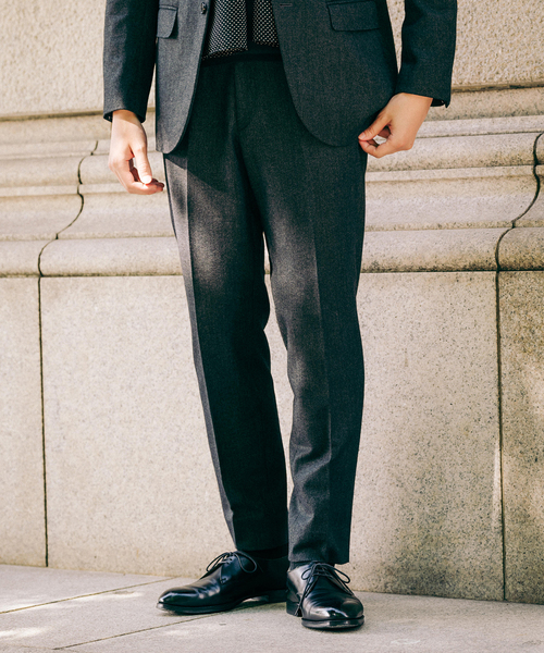 ※EC限定サイズに関してXS(801)とXXL(806)サイズはオンラインストア限定サイズでご用意しています。《尾州生地のこだわりとブリティッシュムードが融合したライトツイードスラックス》・尾州産地の確かな技術によるネップ混ライトツイード生地を使用。国内屈指の織物産地・尾州で丁寧に織り上げた生地は、ネップの味わいと杢感が特徴。・カラーはどれもシックで合わせやすい色味ながら、生地のネップと杢感が奥行きを与え、シンプルな中にも個性を感じさせる仕上がり。・重さや硬さを抑えたライトツイード素材は、動きやすくストレスフリー。日常のビジネスや休日のカジュアルまで幅広く活躍します。・美しい脚線を際立たせるテーパードシルエット。足元に向かって細くなる絶妙なテーパードラインがスタイルアップ効果を生み、スマートで洗練された印象に仕上げました。・ウエストに横方向のみ伸縮する「ウエストマジック」機能は動きやすさとフィット感を両立し、見た目の美しさを損なわずに快適な穿き心地を実現。長時間の着用もストレスフリーです。※表地についてウール39%、アンゴラ2%、カシミヤ2%、ポリエステル27%、レーヨン14%、ナイロン13%、ポリウレタン3%※同素材のアイテムと組み合わせてセットアップでの着用もお楽しみいただけますので、単品での使用はもちろんの事、セットアップスタイルもぜひお試しくださませ。品番:25010300100230商品名:トップツイード 2ボタン ジャケット【ご注意】※照明の関係により、実際よりも色味が違って見える場合があります。またパソコン・スマートフォンなどの環境により、若干製品と画像のカラーが異なる場合もございます。※商品の色味は、商品アップ画像をご参照ください。本体:ドライクリーニング