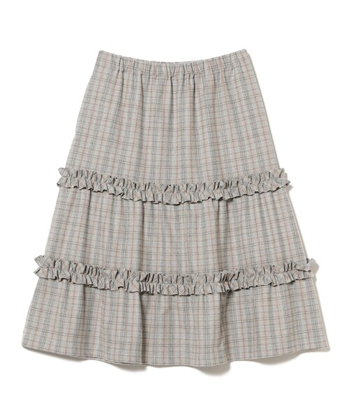 日常を彩る主役級フリルスカート■デザイン〈MARMARI(マルマリ)〉が得意なギャザーが効いたアイテムを〈Ray BEAMS(レイ ビームス)〉らしく、という思いでデザインから作成した別注スカート。フリルの切り替え位置を調整することで、ボリューム感がありながらも野暮ったくならず、洗練された印象に仕上げました。■コーディネートシンプルなトップスをあわせることでスカートのデザインがより引き立ちます。ロングブーツを合わせて、トレンド感のあるバランスの良い着こなしを◎。■サイズ膝下あたりのミディ丈。ウエストゴムでリラックスした穿き心地です。■素材しなやかで軽やかな素材感。歩くたびにフリルが揺れ、女性らしい印象を与えます。BEAMS STAFF:H164 Size:ONE SIZEMARMARI/マルマリデザイナー 白石恵美。文化服装学院スタイリスト科卒業後、様々な既製品の縫製技術を学び、コレクションサンプル、アーティストの衣装等も手がけ、2014年ブランドMARMARIを立ち上げる。MARMARIとはアイスランド語で「ビー玉」。概念にとらわれず、自由に素材を組み合わせ繊維の特徴を活かし、エレガントでフェミニンなものからカジュアルなものまで幅広く提案している。