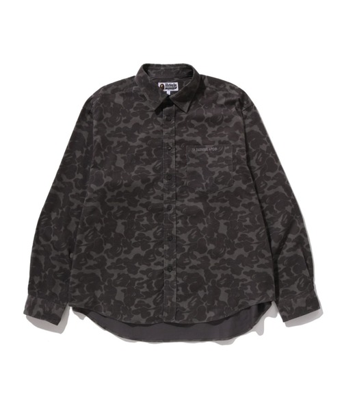 SOLID CAMO柄のロングスリーブシャツ。左胸部分にA BTAHING APE ロゴの刺繍を施したデザイン。リラックスフィットシルエットなのでゆったりとしたサイズ感で着用いただけます。