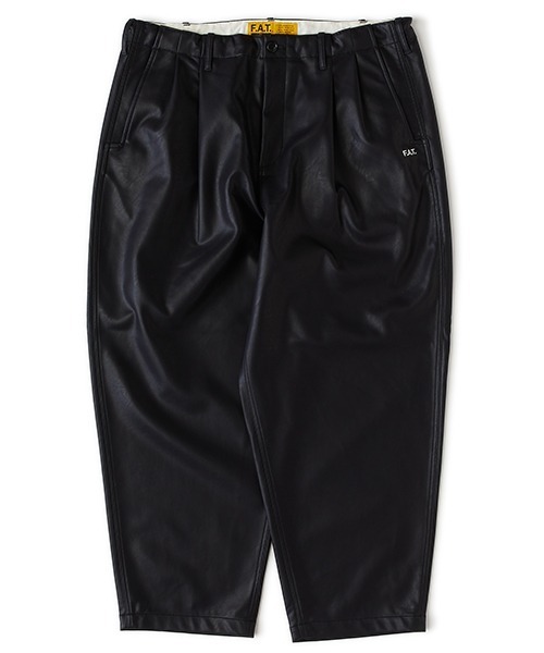 しなやかでキメ細かいシボ感が印象的な合皮素材を使用したワイドパンツ。股上を深くし、渡りを広くとることによりヒップから膝にかけてボリュームを持たせたワイドテーパードに加え、ジャストレングスによる独特なシルエットが魅力。穿き心地の良さはもちろんのこと、ドローコードを備え、ベルトレスでイージーパンツとして着用可能。フロントのロゴ刺繍とバックのブランドネームがさり気なく主張してくれる。