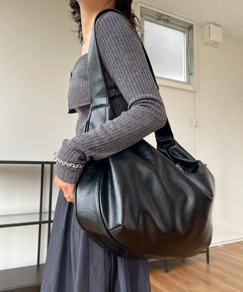 大人の抜け感を演出する、シンプルデザインのビッグショルダー。たっぷり入るのに軽く使い勝手も抜群。デイリーからお出かけや旅行まで幅広く活躍してくれる頼れるバッグ。商品詳細・ショルダー部分長さ調節可能・内側ファスナー収納あり