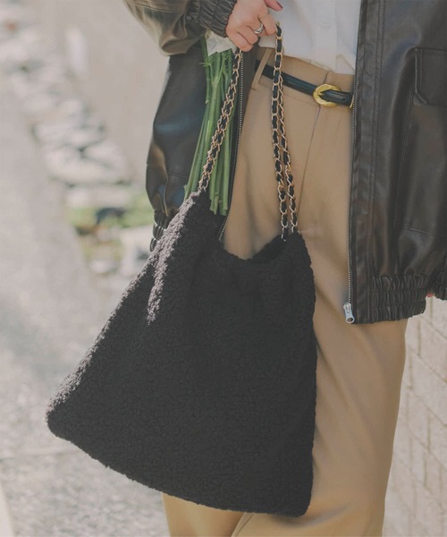 ふわふわのボア素材が季節感を引き立てる大きめチェーンバッグ。ゴールドチェーンが華やかさを添え、コーディネートを上品に格上げしてくれます。 取り外し可能なミニポーチ付きで、使い勝手も抜群。 デイリーにはもちろん、秋冬のお出かけコーデにぴったりのアイテムです。 【素材・サイズ感】 スマホや長財布、500mlペットボトルまでしっかり収まる安心のサイズ感。 内ポケットや、取り外し可能な付属のミニポーチで小物もすっきり整理できます。 可愛らしい見た目と実用性を兼ね備え、デイリーはもちろん特別なお出かけにも映えるバッグです。 【STAFFコメント】 秋冬らしい見た目が大人可愛いボアバッグ。 可愛いボア素材に高見えチェーンがついて大人っぽくお洒落なボアカバンに◎ 大容量サイズなのも嬉しいポイント♪ きれいめにもカジュアルにも合わせやすいデザインです。 プレゼントにもおすすめです♡ 《KOBE LETTUCE ー神戸レタスー》 プチプラレディースファッションからコスメまで、トレンドアイテムを豊富に取り揃えております。 毎シーズン発売されるインフルエンサーとのコラボ商品はSNSでも話題に。