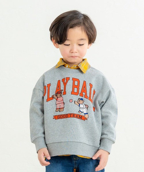 元気キッズにぴったり!遊び心たっぷりの野球ベアが主役のカジュアルスウェット! 野球を楽しむクマたちの刺繍が目を引く、ユーモアたっぷりのトレーナー☆立体感のある丁寧な刺繍が高見えポイント!裏毛素材ののでインナー次第で寒い季節も元気に動き回れるデイリーユースに最適な一枚です😊肩まわりや身幅に程よいゆとりがあり、レイヤードスタイルにも◎ [おすすめのコーディネート]寒い日は中にロンTやシャツを重ねてレイヤードコーデもおしゃれ♪デニムパンツやカーゴパンツと合わせて、アクティブな休日スタイルに🎵キャップやスニーカーをプラスして、スポーティーな印象UP💨通園・通学からお出かけ、公園遊びまで幅広く活躍します🙌 *80、90サイズのみ左肩にボタンがついており、脱ぎ着がしやすくなっております。 *DILのベビーサイズ商品は、全てホルマリン含有率の検査を通っておりますのでご安心下さい。 【DILASH ディラッシュ】 こだわりの素材と加工感、ヴィンテージ・リメイクテイストを加えた、アメリカンカジュアルブランド。 さらに豊富なカラーバリエーションで、明るく元気で楽しい毎日を演出する、そんなコーディネートを提案します。