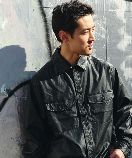 シンプルスタイルに差をつける■デザインCPOシャツジャケットをモチーフに、フェイクレザーで仕上げたトレンドライクな1着。重厚感のある雰囲気を放ちながら、シャツ感覚で軽やかに羽織れるのが魅力です。程よいリラックスフィットが、大人の抜け感を演出してくれます。■コーディネートデニムやチノパンと合わせたカジュアルな着こなしはもちろん、スラックスと合わせたきれいめなスタイルにもマッチ。ロングスリーブシャツやニットなど、様々なインナーと相性抜群で、羽織りとしても活躍してくれます。■素材合成皮革を採用。洗い加工によって生まれる独特のシワ感と色合いが、新品ながらも長年着込んだようなヴィンテージの風合いを表現しています。■ケア方法水洗い・ドライクリーニング両方可(詳細は商品についている品質表示ラベルをご覧ください)※光の当たり具合やパソコンなどの閲覧環境によって実際の色味と異なって見える場合がございます。予めご了承ください。※商品の色味は商品単体で撮影した画像をご参照ください。