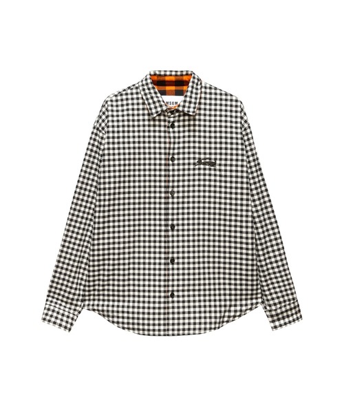 モノトーンのギンガムチェックが静かな存在感を放つ、リバーシブル仕様のフランネルシャツジャケット。 レギュラーカラーにフレンチフロント、ロゴ入りボタンがさりげなく主張するミニマルな佇まい。 裏面にはレッド×ブラックのギンガムを配し、リバーシブルで大胆な表情へと切り替える遊び心をプラス。 起毛感のある地厚なコットンが、フランネルらしい暖かさと存在感を添え、季節感を引き立てるデザイン。 ドロップショルダーとボクシーなシルエットが、肩の力を抜いたリラックス感を演出。 スタイリング次第で都会的にもカントリーにも振れる、今季のハイブリッドピース。 ・リバーシブル仕様(表:モノトーンギンガム/裏:レッド×ブラックギンガム) ・レギュラーカラー ・フレンチフロント・ロゴ入りボタン ・表:ウサギの刺繍ロゴ/裏:MSGMアイコニックローズラベル ・襟後ろ:ウサギモチーフラベル/内側:MSGMロゴラベル ・サイドポケット(両面に配置)・ドロップショルダー ・ボクシーシルエット ・リラックスフィット モデルサイズ:身長187cm 胸囲92cm ウエスト74cm ヒップ89cm 着用サイズ:48 (M)