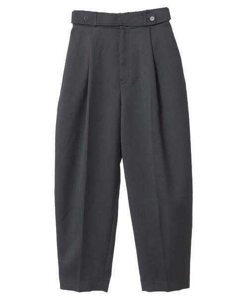 トレンドのカーブシルエットのパンツです。 センタープレスが入れてるので、 カジュアルになりすぎずにきれい目なシーンにも活躍します。 フロント部分に同素材のベルトデザインが入っているので トップスインした時にノンベルトでも様になります。 後ろウエストゴムになっており、 ノンストレスでご着用いただけます。 コンパクトなトップスインで女性らしさをミックスしたコーディネートや、ジ ャケットでトラッドない印象でのご着用もお勧めです。 ウール混ながらなめらかなで肌触りが良く、ストレッチが効いています。 上質な光沢感がありながら洗えるイージーケア素材で使い勝手も良いです。 *リサイクルポリエステルを使用したサスティナブルな素材です。 ■透け感 なし ■伸縮性 ややあり ■光沢感 なし ■裏地 なし ■生地の厚さ やや厚い