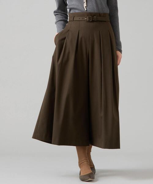 スカートのようなバランスで履きこなせるガウチョパンツ。 タック入りで縦ラインをすっきりと、 ジャストウエストな履きこみでウエスト位置を高く見せてくれます。 共布を使用した加工ベルトも高級感のある仕上がりです。 秋冬に向けて気になる静電気を防止する為に、 帯電防止の裏地と、放電性のあるテープを裾に施しました。 コンパクトなニットや、シャツ合わせなど幅広く気回せます。 ウールの温かみとソフトな風合いのサキソニー。 ウールらしい特性を持ちながら ハンドウォッシャブルでシワになりにくいのも嬉しい素材。 ※サンプル撮影のため実際の仕様と異なる場合がございます。 予めご了承ください。 ■透け感 なし ■伸縮性 なし ■光沢感 なし ■裏地 総裏 ■生地の厚さ 普通