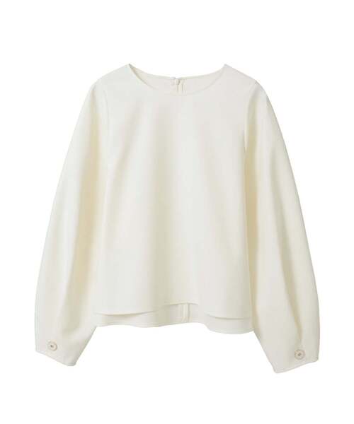 リサイクル糸を使用したサスティナブル素材です。 丸みのあるカーブ袖がアクセントになった シンプルデザインのセットアップブラウスです。 袖口タックとクラッシックなボタントリミングがポイントです。 ウール混率なのにチクチクしない肌触りのジョーゼット素材です。 ストレッチが入っているので動きやすくシワになりにくい素材です。 又ご家庭で手洗いOKの素材です。 ■透け感 なし ■伸縮性 なし ■光沢感 なし ■裏地 なし ■生地の厚さ やや厚い