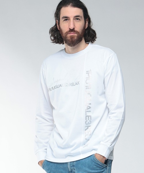 1PIU1UGUALE3 RELAX (ウノ ピュ ウノ ウグァーレ トレ リラックス) アシンメトリー ロゴ ラインストーン仕様 クルーネック 長袖 Tシャツ 1PRUST25156SZ