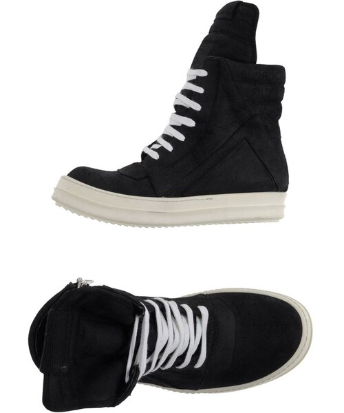 RICK OWENS Sneakers. sueded, no appliqués, solid color, laces, round toeline, rubber sole, flat. Soft Leather