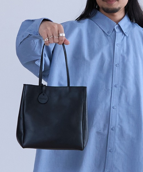MADULI マドゥリ レザーペーパーバッグ(20539)使い勝手の良い紙袋型シルエットのトートバッグ。素材は牛革を贅沢に使用。開口部には、マグネットが付いていて物も落ちにくく、内ポケットも付いていて使いやすい仕様になってます。スマートフォンやお財布はもちろん、マチもしっかりあるので350mlのペットボトルなど楽々収納できます。ミニマルなデザインはカジュアルからキレイめと幅広いシーンで活躍します。※商品を受け取ってから8日以上が経った商品、ブランドタグや梱包を失くされた商品、また、着用感が見られる商品は返品交換を受け付けられないことがございます。予めご了承くださいませ。皮革製品のお取り扱いについてこの製品は天然皮革を使用し、革本来の風合いを最大限に生かすために必要以上の色止めや加工等を施しておりません。その為、水分・湿気・摩擦などにより色落ちや色移りする場合がございますのでご注意下さい。雨や水に濡れた場合は、すばやく乾いた柔らかい布で水分を取り形を整えて必ず陰干しして下さい。高温、多湿の状態で保存しますとカビの発生原因となりますので、風通しのいい場所に保管して下さい。また天然皮革を使用している為、動物本来が有していた傷や血管、毛穴の痕、シワや色ムラがございます。その他部分的な質感の違いやひとつひとつ表情が違うところが天然皮革の証であり革の特徴とご理解願います。弊社製品はバングラデシュの自社工場にて熟練した職人がひとつひとつ手作りにて生産しております。その為仕上がりや風合いに微妙な違いがございますが、大量生産にないオンリーワンの魅力を持っております。使い込むほどに味わいへと変化する製品の表情をお楽しみください。【 MADULI/マドゥリ 】MADULI(マドゥリ)はおまじない、御守りという意味のベンガル語から名づけたブランド。手染めやオイルレザーといったオリジナルの本革を使った紳士靴、ユニセックスのバッグや革小物を展開。日本企画、バングラデシュの自社工場にて生産するコストパフォーマンスの高いアイテムを多く展開しています。