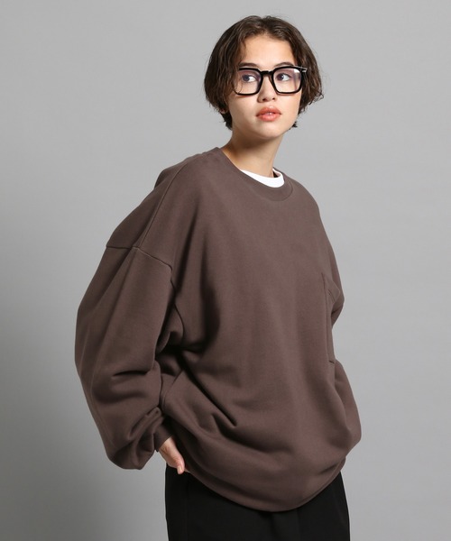 ミニ裏毛を使用した長袖Tシャツ 秋にちょうど良い、肉感とクリーン見えの生地が特徴です。 シンプルながら大きめのポケットがデザインアクセントに。 着回しやすく万能な仕上がりです。 オーバーサイズを採用したリラックス感のあるシルエット。 ※サンプルにて撮影をしておりますので、実際の商品とは仕様や加工・サイズ等が若干異なる場合がございます。 ※屋外の光や照明の当たり具合で、実物と色味が異なって見える場合がございます。詳細画像の色味をご確認ください。 なお、商品の色や質感を出来るだけ忠実に再現するよう心掛けておりますが、パソコンなどの環境により、実物と若干異なる場合がございます。 ※写真を許可無くコピー・転用することは固くお断りします。