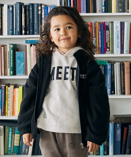 軽いフリース素材のスタンドカラージャケット。 胸元のロゴは刺繍になっています。 ----- 透け感:無し 伸縮性:あり 裏地:無し ポケット:あり サイズ*M(110-120)・L(130-140)・XL(150-160)・F(160-170) ※Fサイズは価格が異なります。 MODEL 01 / 118cm / 20kg / M(110-120)サイズ着用 MODEL 02 / 110cm / 16kg / M(110-120)サイズ着用 MODEL 03 / 110cm / 16kg / M(110-120)サイズ着用 MODEL 04 / 165cm / F(160-170)サイズ着用