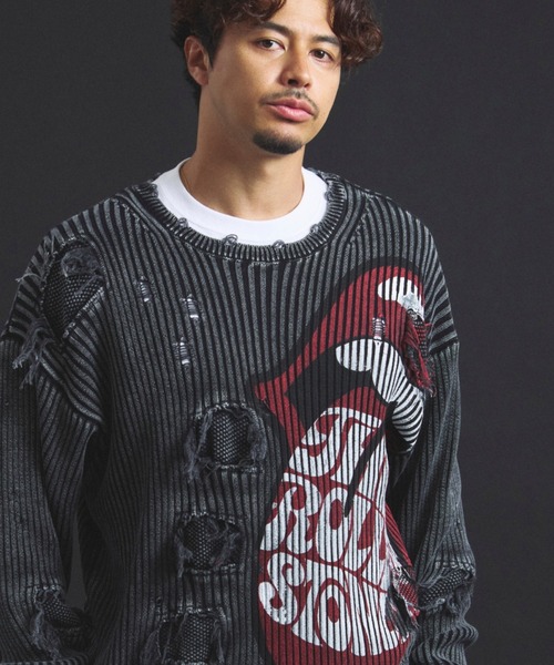 グランジスタイルを纏う ― The Rolling Stones 別注ニット伝説のロックバンド「The Rolling Stones」とJACKROSEのコラボレーションから登場した、大胆なダメージ加工が目を引くグランジニット。フロントにはバンドの象徴「Lips & Tongue(リップス&タン)」ロゴを大きく配置し、ロックな存在感を放ちます。全体に施されたダメージ加工がパンクな雰囲気をプラスし、一枚でスタイルの主役になるデザインです。素材は肌触りが良く、快適な着心地。ゆったりとしたオーバーサイズシルエットで、ユニセックスに着用いただけます。TシャツやロンTとのレイヤードスタイルもおすすめで、インナーをあえて見せることでよりグランジ感のある着こなしが楽しめます。デザインはクールな印象の総柄「ブラック」と、より個性的なビッグプリントの「ブラック系2」の2パターンをご用意しました。【THE ROLLING STONES/ザ ローリングストーンズ】1962年、ロンドンで結成。翌63年にシングル「カム・オン」でデビュー。2022年に結成60周年を迎えたモンスターロックバンド。 当時のメンバーはミック・ジャガー(Vo)、キース・リチャーズ(G)、ブライアン・ジョーンズ(G)、ビル・ワイマン(B)、チャーリー・ワッツ(Ds)。 その後、メンバーの変動がありながらも、一貫してブルース/R&Bに根差したワイルドなストーンズサウンドを奏で続け、2023年10月には18年ぶりとなるアルバムが発表されるなど、現在においてもシーンの第一線に君臨し続けているロックの代名詞的な存在である。また、バンドのアイコンでもある「リップス&タン」通称ベロマークに代表される様に、音楽シーンのみならずファッション、カルチャーシーンにおいても多大な影響を与え続けています。現在のメンバーは、ミック・ジャガー(Vo)、キース・リチャーズ(G)、ロン・ウッド(G)。【JACKROSE/ジャックローズ 快適お買い物ガイド】★最短で翌日お届け商品をカートに入れた後、注文内容の確認ページで「即日配送」を選択していただれば、最短でご注文した翌日にお届け致します。★商品のお気に入り登録完売カラーの再入荷通知や、ラスト1点の通知、セールの通知をお知らせします。★ブランドのお気に入り登録新商品や再入荷など、いち早くJACKROSEのお得な情報を受け取ることができます。【注意事項】・サイズ・仕様について商品は採寸方法や生産時期により若干の誤差や仕様変更が生じる場合があります。予めご了承ください。・カラーについてモニター環境や照明の影響で、実際の色味と異なる場合があります。・素材・お手入れについて素材の特性上、洗濯や使用により若干の縮みや色落ちが生じる場合があります。お手入れ方法はタグ記載の指示をご参照いただき、適切にお手入れください。