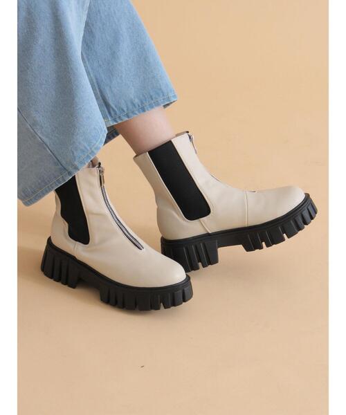 スタイリングにエッジをプラスするフロントジップが魅力的なブーツ。さっと履けるサイドゴアになっているため、簡単に着脱することができます。存在感のある厚底がスタイルアップ効果を演出。ミニ丈のボトムスはもちろん、ロングスカートにも相性の良いアイテムです。【その他採寸】 M 全長:[ブーツ丈] 22cm 幅:[履き口周り] 23cm L 全長:[ブーツ丈] 22cm 幅:[履き口周り] 24cm ※商品画像は、撮影環境やお客様のご利用のPC・スマートフォンのモニター環境などにより実物と色味に差異がある場合がございます。★《お気に入り登録》でお得な情報をGET★① 商品ページ内のハートマークをクリック!② 以下通知が受け取れます!「再入荷」「ラスト1点」「特別セール」etc..\ブランド、ショップのお気に入りも是非!/