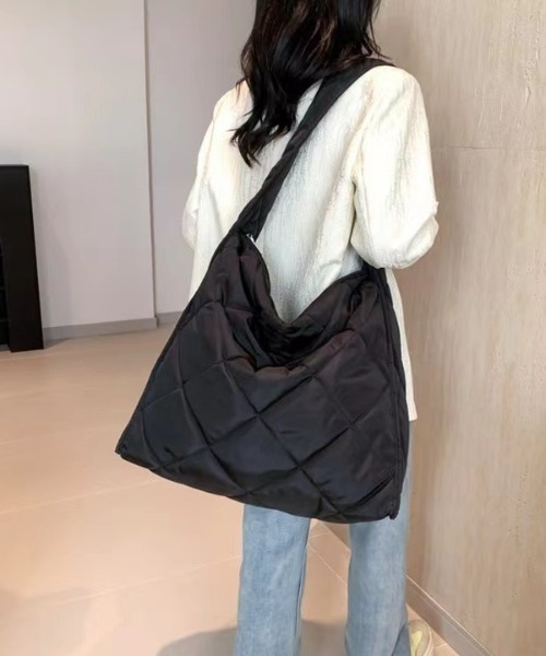 トレンドと実用性を両立!ふかふかキルティングのBIGバッグトレンド感のあるダイヤ柄キルティングと、圧倒的な収納力を兼ね備えた大容量ショルダーバッグ。デイリー使いから旅行、マザーズバッグまで幅広く活躍する万能アイテムです。▶素材ポリエステル- - - - - - - - - - - - - - - - - - - - - - - - - - - -【ご注文の際のご注意】 ・当商品は海外生産の製品となり、プリントや糸始末などが甘い部分、若干の傷や汚れ、ほつれ等がある場合がございます。・撮影はサンプル品を使用しており、表示のサイズ感も実物とは若干異なる場合もございますので、予めご了承ください。・照明やモニターの写り具合により、画像と実際の商品の色が多少違って見える場合がございます。 ・生産時期によってジップ/ボタン等パーツ部品の仕様が異なる場合がございます。以上、ご了承の上ご購入をお願い申し上げます。 - - - - - - - - - - - - - - - - - - - - - - - - - - - -【気になったら是非お気に入り登録を忘れずに!】 完売カラーの再入荷や、ラスト1点の通知、セールのお知らせも受け取ることができます。