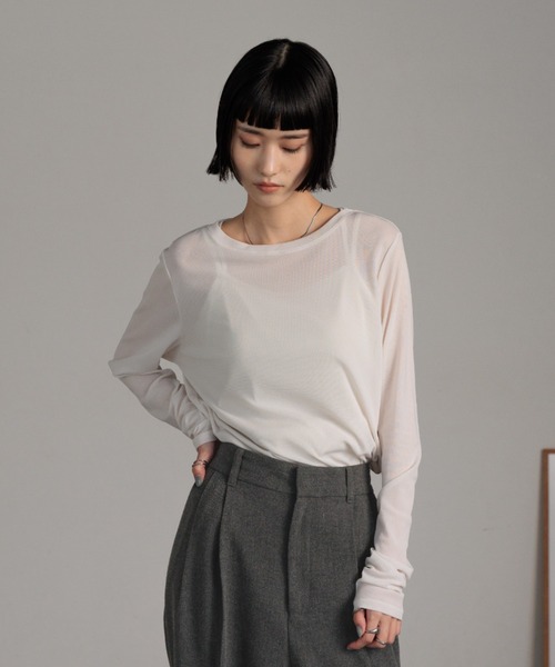 ■素材■伸縮性に富んだナイロン100%のメッシュです。ナイロン特有の柔らかさと肌触りの良さを兼ね備えた素材です。■デザイン■伸縮性と透け感のあるシアー生地は、1枚でもレイヤードでもサマになるアイテムです。ピッタリし過ぎないサイズ感もおすすめです。■スタイリング■袖丈は長めに作っているので、レイヤードしたときに袖から出せる丈もポイントです!ベスト、サロペット、ジャケットのインナーとしても大活躍まちがいなし。.