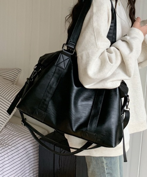 ◆POINT◇大人カジュアルにぴったりなフェイクレザーボストンショルダーバッグ。上品なフェイクレザーとシンプルなシルエットで、通勤・通学から小旅行まで対応。A4やペットボトルも収納できるたっぷり容量で、内ポケット&ファスナー付きで使いやすさも◎。2WAY仕様で、手持ちも肩掛けもOK。シーンを問わず使える万能バッグです。【色展開】ブラック / ブラウン――――――■収納について・A4対応:〇・ノートPC:〇(13インチ程度)・長財布:〇・内ポケットあり・ファスナー付き開口部・ショルダー紐は長さ調節可能――――――◆COORDINATE◇・オフィスカジュアルに取り入れて、きれいめ通勤スタイルに・デニムやスウェットに合わせて抜け感のある大人カジュアルコーデに・シンプルデザインだからこそ、トレンドに左右されず長く使える万能バッグ――――――・フェイクレザーバッグ・ボストンバッグ・ショルダーバッグ・通勤通学・2WAY・大容量バッグ※着用身長によって画像イメージと異なる場合があります。※撮影環境により、実際のカラーと多少異なる場合がございます。《 お知らせ 》▼商品のお気に入り登録お気に入りアイテムの値下げ・再入荷・在庫1点などの通知を受け取ることができます。▼ブランドのお気に入り登録新商品や再入荷、セール、クーポン配布などお得な情報を受け取ることができます。是非、お気に入り登録してみてください♡※他のキャンペーンにより、期間中に価格が変動する場合があります。※セールは予告なく終了させていただく場合もあります。