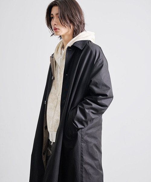 Revo.(レヴォ)◆2025-26AW Collection◆リバーシブルに使えて着回し力の高さが魅力的なロングコートリバーシブルで着られるダブルフェイスコート。表側は、程よいハリ感とソフトな風合いを併せ持ったピーチ加工ツイル素材に、製品染めを施すことでこなれた風合いに。裏側は、ブリティッシュテイストなガンクラブチェック柄。首元がすっきりとしたステンカラーで、フーディーやハイネック等のインナーやボリューム感のあるマフラーなどとも好相性。アイボリー、ブラック、オリーブの3色展開。表情の異なるリバーシブル仕様は、気分に応じたスタイリングできれいめにもカジュアルにも幅広く対応します。▶クラシカルな雰囲気が漂うバルカラーコート▶裏表で異なるデザインを楽しめるリバーシブル仕様▶表地はT/Cポリピーチツイル素材▶裏地は程よい光沢感のあるチェック地▶大人な雰囲気とこなれ感を演出してくれるロング丈▶ルーズ感のあるAラインシルエット▶ゆったりめのサイジングでインナーも着込めるサイズ感▶コーデュロイ素材の襟がヴィンテージライクな雰囲気に▶キレイめにもカジュアルにも落とし込める1枚▶秋冬から春本番のスプリングコートとしても◎※こちらの商品は旧品番68017712と若干の素材混率の変更がございますが、同一商品になります。予めご了承くださいませ。COORDINATEトレンドのカーゴパンツやトラックパンツ、テックパンツとも相性抜群。ニットやシャツ、フレアパンツ、スラックス、革靴などと合わせてアダルトな雰囲気に、スウェットやパーカー、ワイドパンツで旬なストリートスタイルにも◎テーラードジャケットやセットアップをインナー合わせた、モードな着こなしもおすすめです。寒さが厳しいシーズンは、中間着にカーディガンやGジャン、インナーダウン、キルティングライナー等を着用すれば、防寒性も高まり旬なレイヤードスタイルをお楽しみ頂けます。足元はスニーカーは勿論の事、ローファー、アンクルブーツ、レザーシューズなどの革靴で上品な雰囲気の合わせも◎。また、スタイルのアクセントとして、スマホショルダーやボディバッグ、巾着バッグ、バケットハット、サングラスなどの小物使いも◎。Revo.音楽、古着、ワーク、ミリタリー etc ...様々なカルチャーやライフスタイルからインスパイアされたアイデアを、素材の風合いを活かしたベーシックアイテムへとアウトプット。シンプルな中にも「匂い」を感じるナチュラルスタイルを提案します。=================================◆気になるアイテムは≪お気に入り登録≫がオススメ!入荷情報やクーポン、セール情報のお知らせを受け取ることができます。=================================<価格改定のお知らせ>2025/10/6より原価高騰により価格改定をさせて頂きます。ご了承下さいますよう、お願い申し上げます。※撮影画像はサンプル品を使用しているため、実際の商品と仕様、加工、サイズが若干異なる場合がございます。また、可能な限り実物に近いカラーにて掲載していますが、使用しているパソコンのモニター設定や、携帯電話のメーカー・機種により実際のカラーと異なって見える場合がございます。予めご了承ください。※文章・画像等の内容の転載及び複製等は固くお断りします。