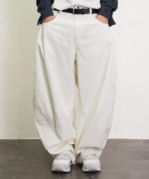 一般的なストレートチノの無骨さに、 計算し尽くされたカーブシルエットによる洗練されたニュアンスを加えた、大人のための新感覚ボトムス。 膝から裾にかけてわずかにカーブを描く独自のパターンを採用。これにより、単なる「太いパンツ」ではなく、脚の形に自然に沿うモダンで美しいドレープを生み出します。正面からはもちろん、横から見ても立体的でサマになります。 腰回りとヒップには適度なゆとりを持たせ、窮屈感のないリラックスした穿き心地を実現。アクティブな動きにも対応し、デイリーユースからアウトドアまで幅広く活躍しモダンな立体感を活かし、シンプルなアイテムを合わせるだけでコーディネートが格上げされます。