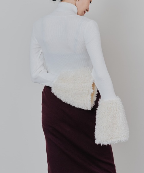 -25AW|TEVALT-レイヤード映えする、ファースリーブタートルニット。【Material】レーヨン・ナイロン混のニット素材を使用。しなやかな肌触りで、型崩れしにくくお手入れがしやすいのが特徴です。長時間着用してもストレスを感じにくい、快適な着心地に仕上げました。【Design】オーソドックスなリブタートルニットをベースに、袖部分へファーをあしらったデザイン。シンプルながらも存在感があり、スタイリングにさりげない華やかさをプラスします。DOLLUPOOPSらしい、遊び心のある一着です。【Size】程よくフィットするリブ編みで、身体のラインをきれいに見せてくれます。やや長めに設定した袖丈が、手元を華奢な印象に演出。インナー使いもしやすい、バランスの取れたサイズ感です。【Styling point】1枚で主役として着るのはもちろん、ジャケットやジレ、ワンピースのインナーとしても活躍。秋冬のレイヤードスタイルに幅広く取り入れられます。___________________________★商品のお気に入り登録 完売カラーの再入荷通知や、ラスト1点の通知、セールの通知も受け取ることができます。是非ブランドのお気に入り登録もご一緒にお願い致します!!! ※画像の商品は光の反射や角度により、実物と色味が異なる場合がございます。 また、表示のサイズ感と実物は若干異なる場合もございますので、予めご了承ください。 ※着用、お取り扱いの際は、商品についている品質表示とアテンションタグを必ずご確認ください。-TEVALT | バレット-オケージョン仕様として充実したスタイルのある女性に向けたレーベル。上質でラグジュアリーなアイテムを自在に組み合わせることで、デイリーにもパーティーシーンでも着回せます。オンにもオフにも楽しめる幅広いスタイルを提案します。 -Instagram-公式インスタグラム【dollupoops.tevalt_official】※商品のサイズ感やご質問は【dollupoops.tevalt_official】のインスタアカウントDMにて承っております。お気軽にご相談くださいませ。