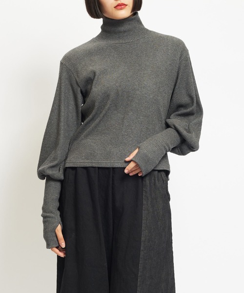2025-26 AUTUMN&WINTER COLLECTION■design・暖かみのある着心地が魅力のカットソー。・ハイネック仕様で秋冬らしいスタイルを楽しめます。・袖は肘まではゆったり、袖口にかけてフィットするメリハリのあるシルエット。・さらに袖口には親指を通す穴を設け、手元まで暖かさをキープ。・身頃は程よく身体にフィットし、すっきりとした印象に仕上がります。■fabric・伸縮性、ドレープ性に優れたテキスタイル。・身体に優しくフィットし、着心地が良いことが特徴。■coordinate・バルーンスカートでバランスの取れたコーデ。・ボリュームのあるパンツにブーツを合わせてモードに。‥‥‥‥‥‥‥‥‥‥‥‥‥‥‥‥厚さ:厚手透け感:なし伸縮性:あり光沢感:なしポケット:なし裏地:なし※詳しいお手入れ方法は商品タグをご参照ください。‥‥‥‥‥‥‥‥‥‥‥‥‥‥‥‥《お知らせ》・商品画像はご覧のモニター環境により、実物の色味と多少異なる場合がございます。予めご了承ください。・「商品のお気に入り登録」で再入荷・値下げ・在庫1点などの通知を受け取ることができます。・「ブランドのお気に入り登録」で新商品や再入荷など、お得な情報を受け取ることができます。※他のキャンペーンにより、期間中に価格が変動する場合があります。※セールは予告なく終了させて頂く場合もあります。