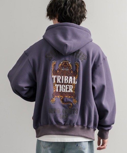 大胆に施された刺繍がインパクト抜群!KRIFF MAYERスーベニア刺繍ZIPパーカー。ふんわりと優しい肌触りの裏起毛で、着用時のあったかい感触が特徴です。着脱が容易なフルジップタイプで、ライトアウターとしても重宝します。■ 存在感のあるバックスタイルバッグにTRIBALTIGERグラフィックの刺繍が施されたジップパーカー。胸元にも刺繍が施され、羽織るだけでコーデにアクセントをプラス。ファスナーはメタルファスナーを使用し、クラシックな見た目に。カーゴパンツやワイドデニム、バルーンパンツなどと相性抜群です。■ ふんわり裏起毛でぬくぬくTC裏起毛生地を使用し、しっかりとした厚みと優れた保温性を実現。ふんわりと優しい肌触りの裏起毛で、着用時のあったかい感触が特徴。適度にハリのある丈夫な生地感ながらも、柔らかさを両立しています。■ 絶妙なゆったり感肩幅、身幅に余裕を持たせたオーバーサイズでヌケ感を楽しめるサイジング。袖口、裾口はリブ切替のプレーンなディテールで、メリハリをプラス。リラックス感もあり、普段着としてはもちろんルームウェアとしても◎■ 着脱容易なフルジップ着脱が容易なフルジップタイプで、ライトアウターとしても重宝!顎下部分までファスナーが閉まるので、防寒対策もばっちり◎ネック部分にボリュームが出て、立体的な立ち上がりのあるフォルムに。フロントには定番のオープンポケットが付いているので収納力も抜群です。■ ユニセックスアイテムカジュアル、ストリート、アメカジ、韓国系などスタイルを問わない万能さ。メンズ・レディースを問わない男女兼用の対応商品で、プレゼントにもオススメ。ペアやカップルコーデのお揃いにも最適で、家族でシェアしたりと幅広く活躍!※染料の特性上、着用・摩擦・洗濯により色落ち、色移りする特徴があります。【KRIFF MAYER/クリフメイヤー】アメリカンカジュアル(アメリカ西海岸)をベースに現代のトレンドをMIXさせた古着感覚のデイリーウエア。古着が持つ特有の色合いやヤレ感、そして古着が作られた背景(カルチャー)を感じさせるデザインやプリント柄に現代のトレンドとクリフメイヤー独自の切り口でミックスしたスタイルです。ベーシック、かつオリジナリティーあふれる新しいアメリカンデイリーウエアとして、現代を生きる人々に提案します。■着用コメント・モデル MASASHI:身長173cm / 体重55kg着用サイズ:L着丈:お尻にかぶるくらいの長さでした。肩幅:中にカットソーで、ゆとりがありました。身幅:前を閉めても窮屈感はありませんでした。・スタッフA:身長165cm / 体重52kg / 普段S-M着用着用サイズ:M着丈:お尻が隠れるくらいの丈感でした。肩幅:肩の落ちた、ゆるいシルエットで着られました。身幅:余裕のあるサイズ感で、動きやすかったです。・スタッフB:身長180cm / 体重64kg / 普段XL着用着用サイズ:XL着丈:バランスの取れた丁度良い長さでした。肩幅:ざっくりとしたシルエットで着用できました。身幅:肩幅と同じくワイドなサイズ感でした。【お買い物をお楽しみいただく為に!】▼商品のお気に入り登録完売カラーの再入荷通知や、ラスト1点の通知、セールの通知も受け取ることができます。▼ブランドのお気に入り登録新商品や再入荷等、いち早くブランドのお得な情報を受け取ることができます!※画像の商品は光の照射や角度、お使いのモニター環境により実物と色味が異なる場合がございます。