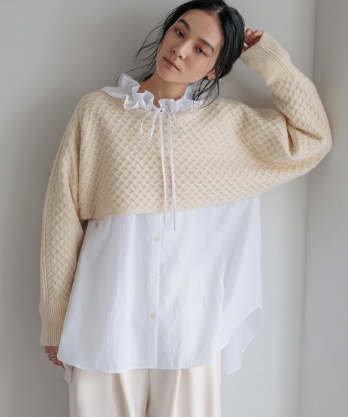 ■素材■膨らみと暖かみのある糸を使用しているのでケーブル柄が引き立って冬には欠かせない素材感です。イージーケアもうれしいポイントです。■デザイン■ケーブル編みのデザインはシンプルながらも存在感があり、コーデのアクセントにぴったりです。プルオーバーとして着用したり、肩がけしてショール風にしたりと着回しが効くアイテムです。■スタイリング■ハイウエストのボトム合わせでプルオーバーとして着用したり、肩がけにしてショール風にしたりとこの1枚で秋冬のコーデのポイントとなること間違いなしのアイテムです。.