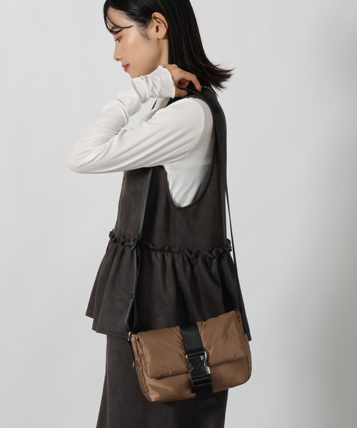 バックルデザインがアクセントになった、ショルダーバッグ。 程よい光沢感があり、カジュアルにはもちろん、上品にも合わせやすいアイテムです。 内側にはポケット付きで、ショルダー紐の長さ調整が可能。 軽量でコンパクトなので、デイリー使いや旅行などにもおすすめです。