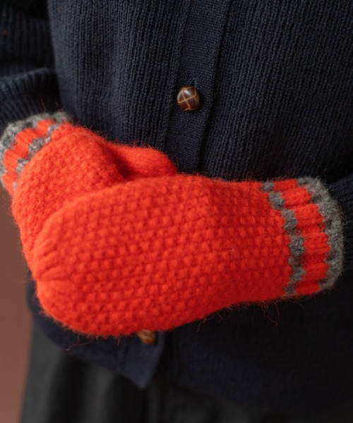 カレッジテイストの配色ラインがポイントのミトン。 ぽこぽことしたカノコ編みと、太いリブの編地バランスがどこか遊び心を感じさせるアイテムです。丸みのあるシルエットは残しつつ、手にフィットするすっきりとしたサイズに仕上げました。アイビースタイルに欠かせないホワイト×ネイビー、差し色にぴったりのオレンジ×グレー、ニュアンス感のあるブルー×イエローのカラー展開。暗くなりがちな秋冬のスタイリングのアクセントに。これからの季節のプレゼントにもおすすめです。 【素材の特性・お取り扱いの注意】 ・取り扱いの注意については取り扱い表示をよくご確認の上、着用をお願い致します。 ・素材の特性上、ピリング(毛玉)を完全に防止することは出来ません。ピリングが出来ましたらハサミで丁寧に取り除いて下さい。毛玉取り機をご使用の際には編地を切らないようにご注意下さい。 ・タンブラー乾燥はお避け下さい。 ※撮影画像は、光の当たり具合やモニターの環境により色味が違って見える場合があります。あらかじめご了承下さい。 ※画像はサンプルを着用しています。お届けする実際の商品と仕様、加工、サイズが若干異なる場合があります。